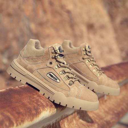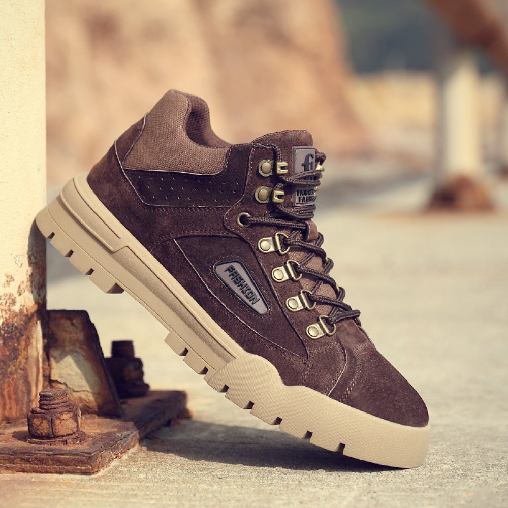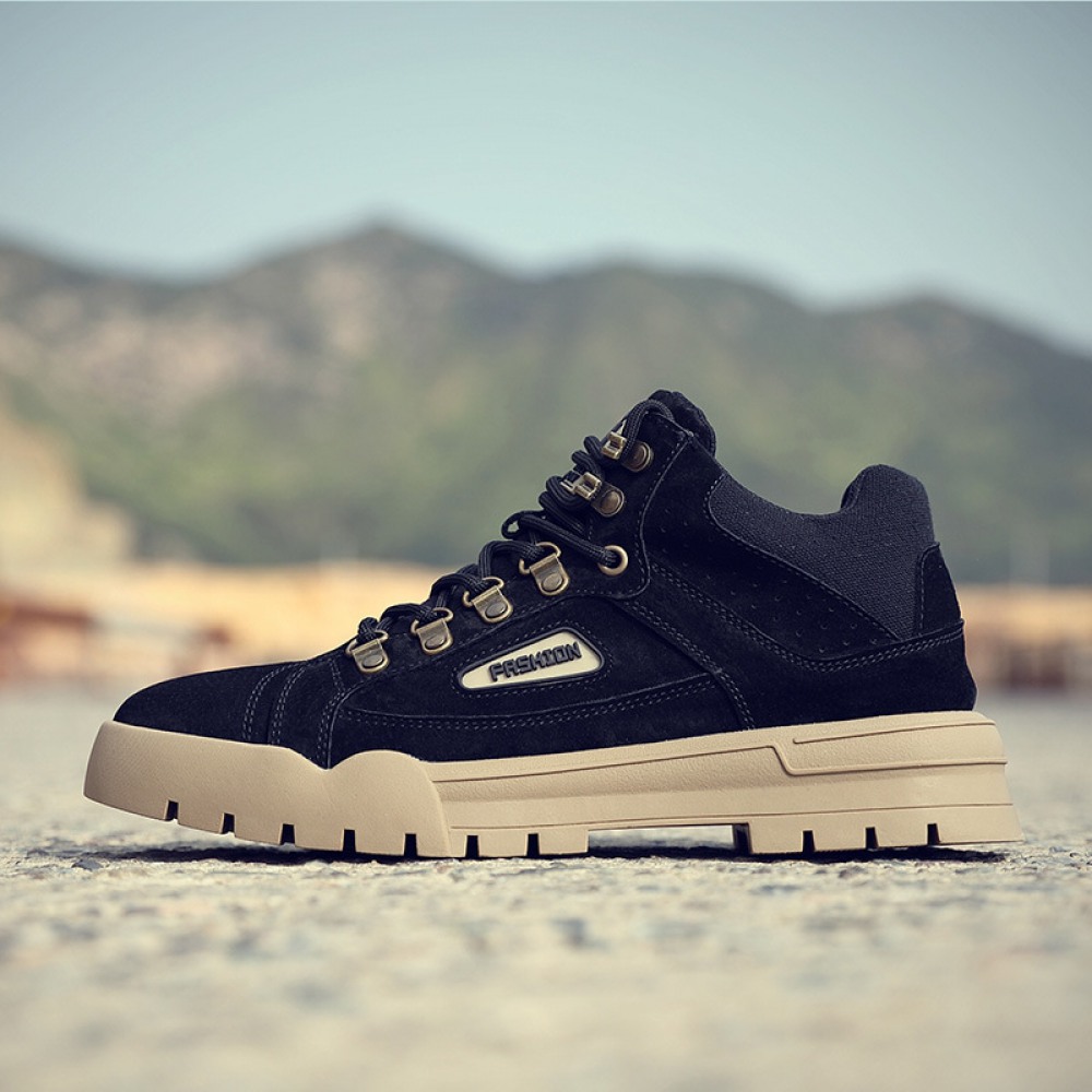 Autumn New Leather Men's Leather Boots Front Lace-Up Low-Heel Martin Boots Mens Shoes