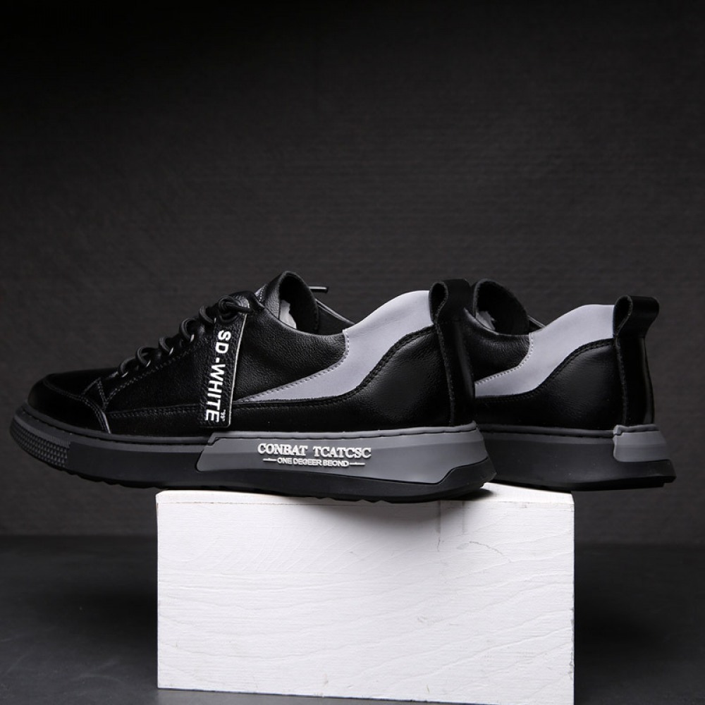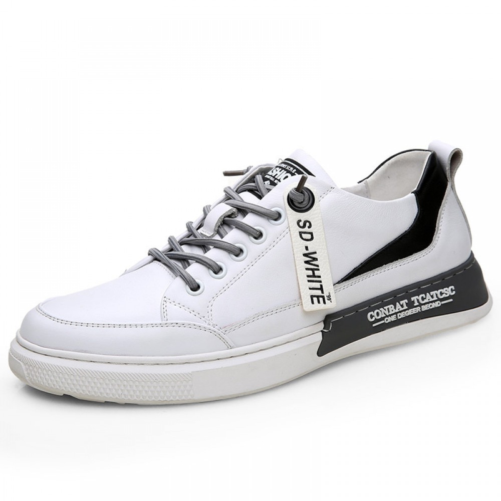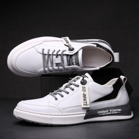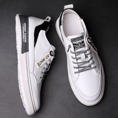 Summer Men's Board Shoes Soft Leather White Shoes Mens Leather Trendy Shoes Shell-Toe Daily Casual Shoes