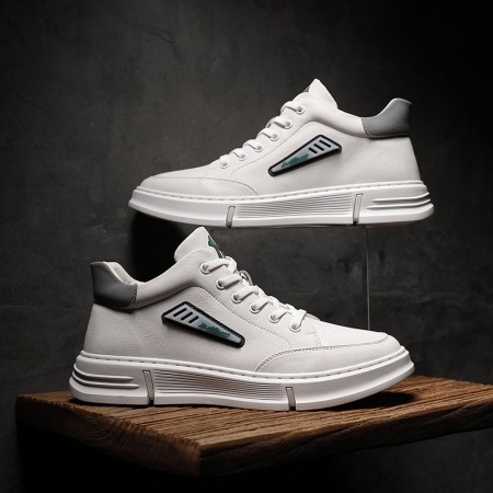 Summer Men's Board Shoes Soft Leather White Shoes Mens Leather Trendy Shoes Shell-Toe Daily Casual Shoes